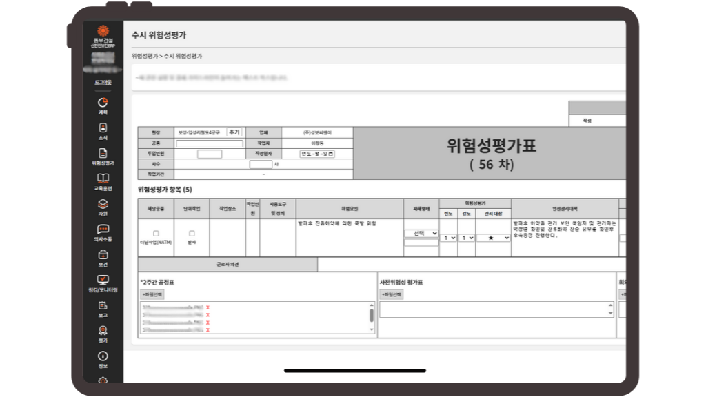 위험성평가 공종 데이터 관리